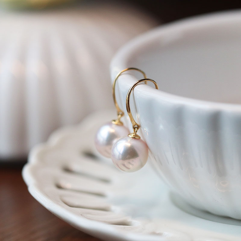 Special Classic 18K Gold Basic Ear Hook Earrings Japan Imported Aurora Akoya Natural Seawater Pearl Ear Hook Earrings Earrings