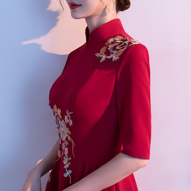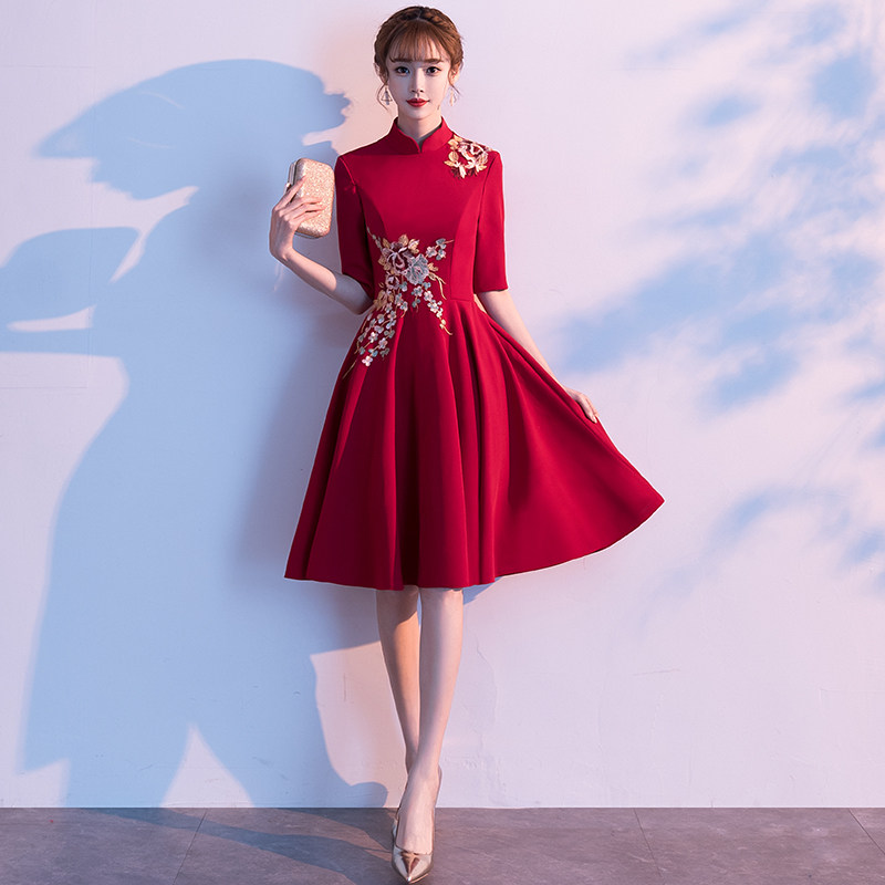 Mid- and long-sleeved red mid-long sleeve red long wine long sleeve red long short sleeve red short wine short wine short red short wine short long and long V wine red medium and long V collar