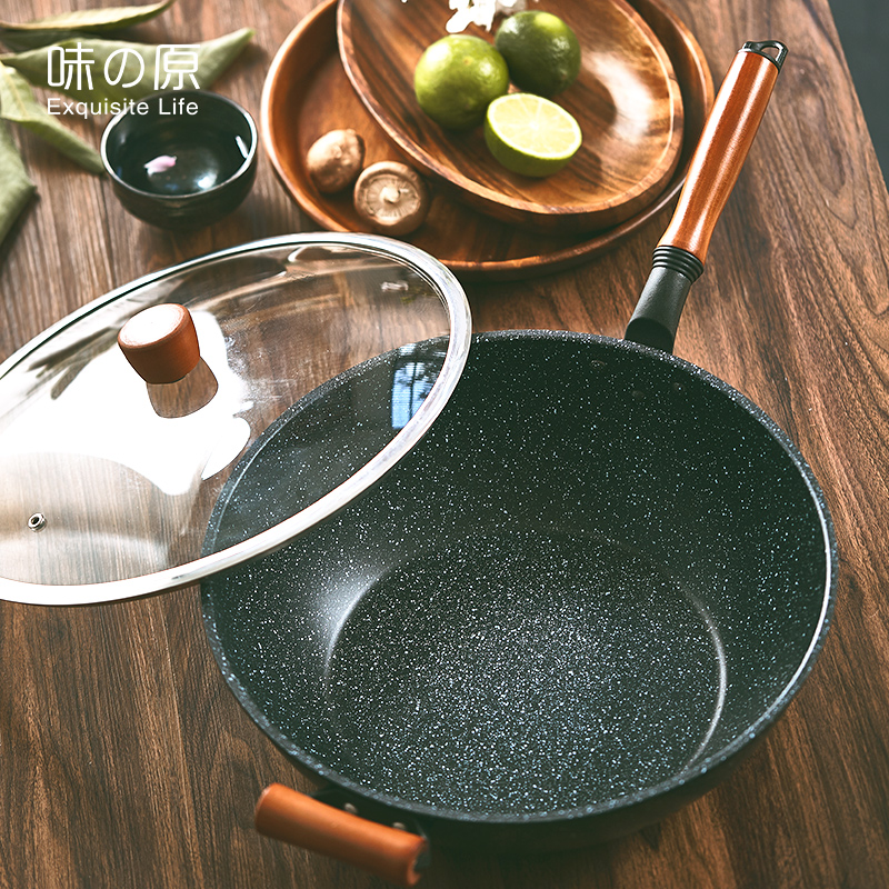 Wok household 28cm Maifan stone non-stick frying pan flat bottom with ears easy to stir fry gas induction cooker general