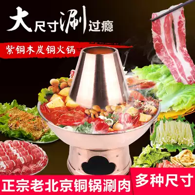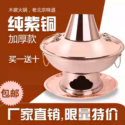 Handmade copper hot pot Pure copper old-fashioned large copper pot Commercial Mandarin duck pot Old Beijing shabu-shabu lamb pot charcoal carbon hot pot
