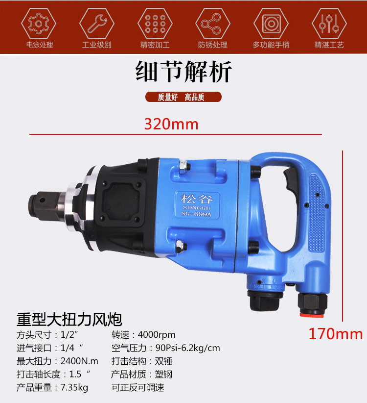 Pinggu 1 inch wind gun machine pneumatic wrench heavy torque heavy pneumatic tool repair vehicle pneumatic wrench