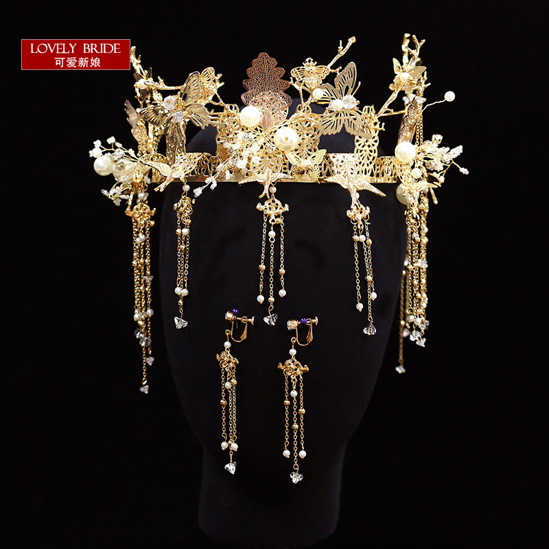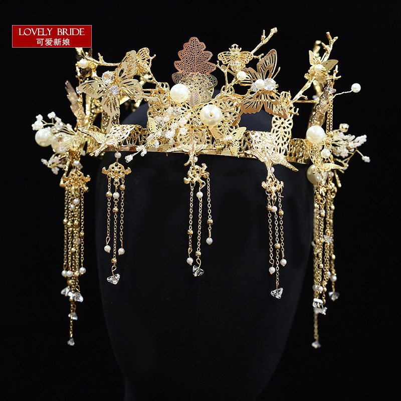 Cute Bride 2020 new Chinese style ancient dress Canopy Classical Wedding Bride Show and Dragon Phoenix Hair Accessories