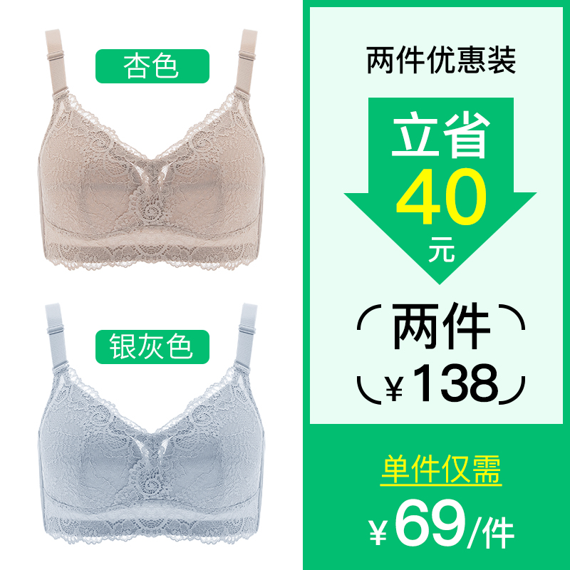 Underwear women without steel rim ultra-thin section large chest display small bra cover fat mm large size gathered sub-breast full cup upper bracket