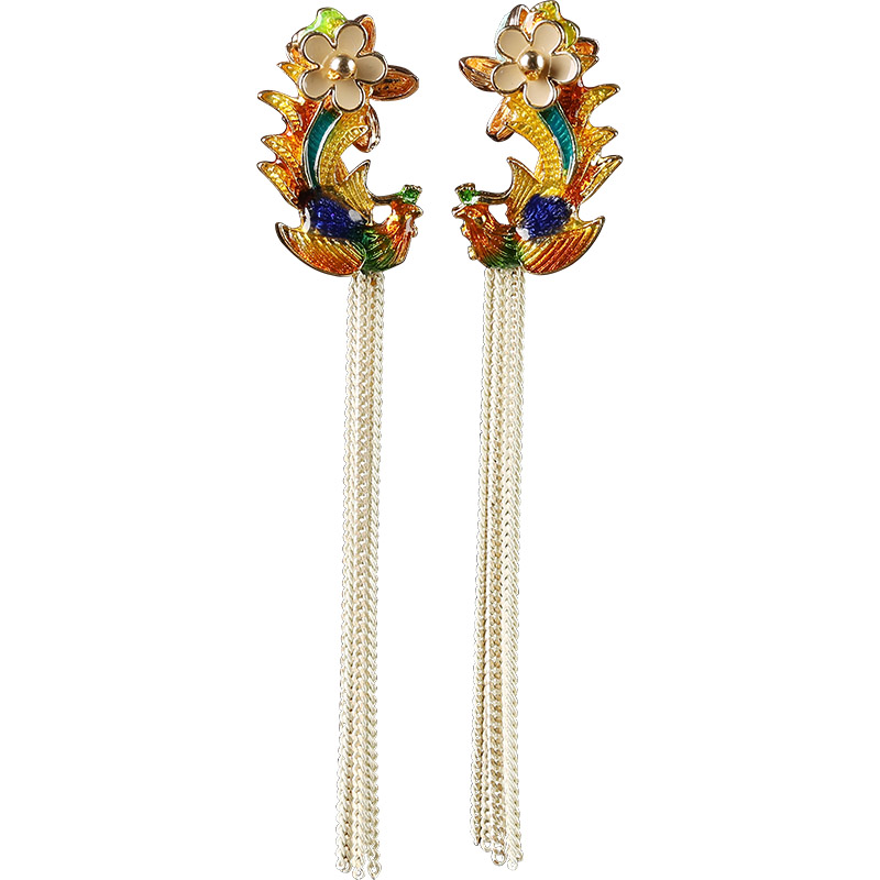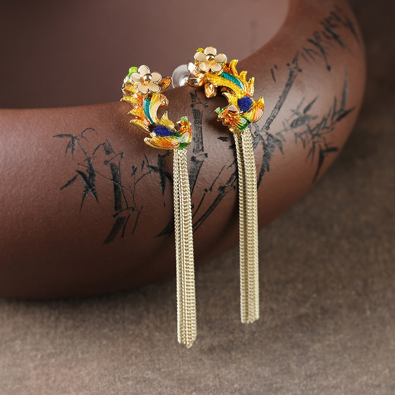 Ancient Wind Small Flower Flow Sueared Earrings Long Version Temperament Advanced Sensation Ear Pendant Pure Silver Retro National Wind Ear Ornaments Woman