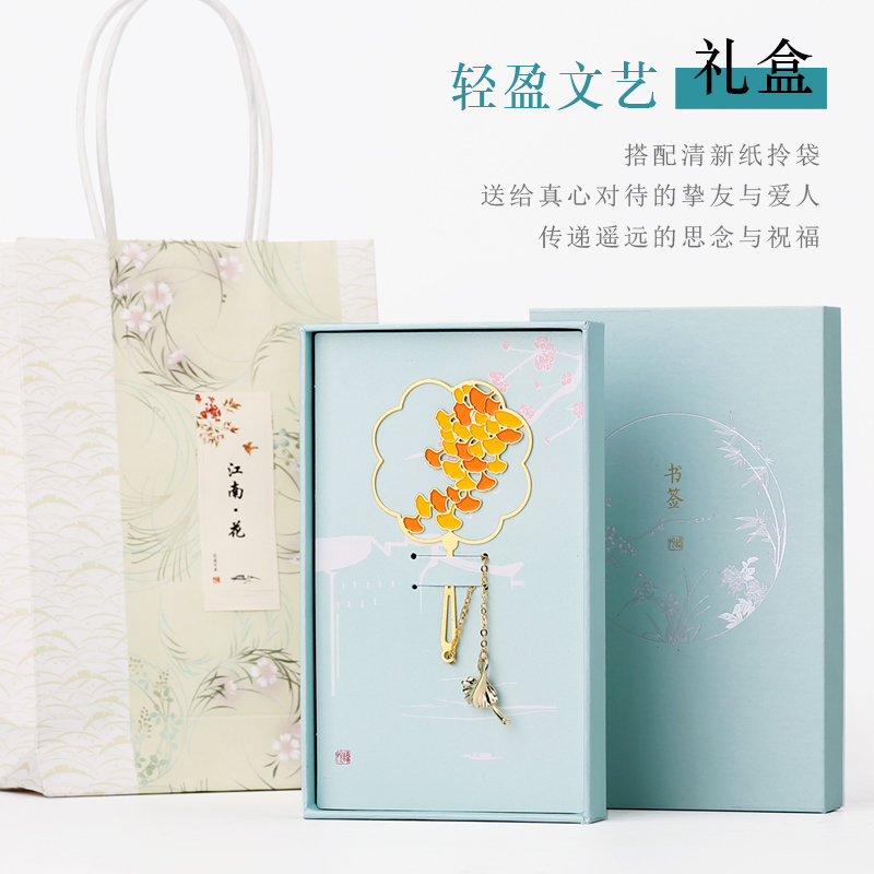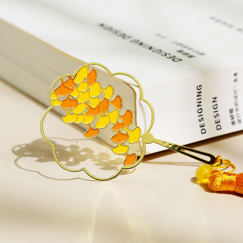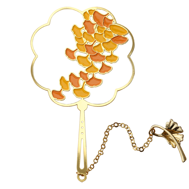 Exquisite hollow brass metal fan bookmark Simple literary ginkgo tassel creative gifts Classical Chinese style Ancient style small fresh students with cute small gifts diy custom lettering