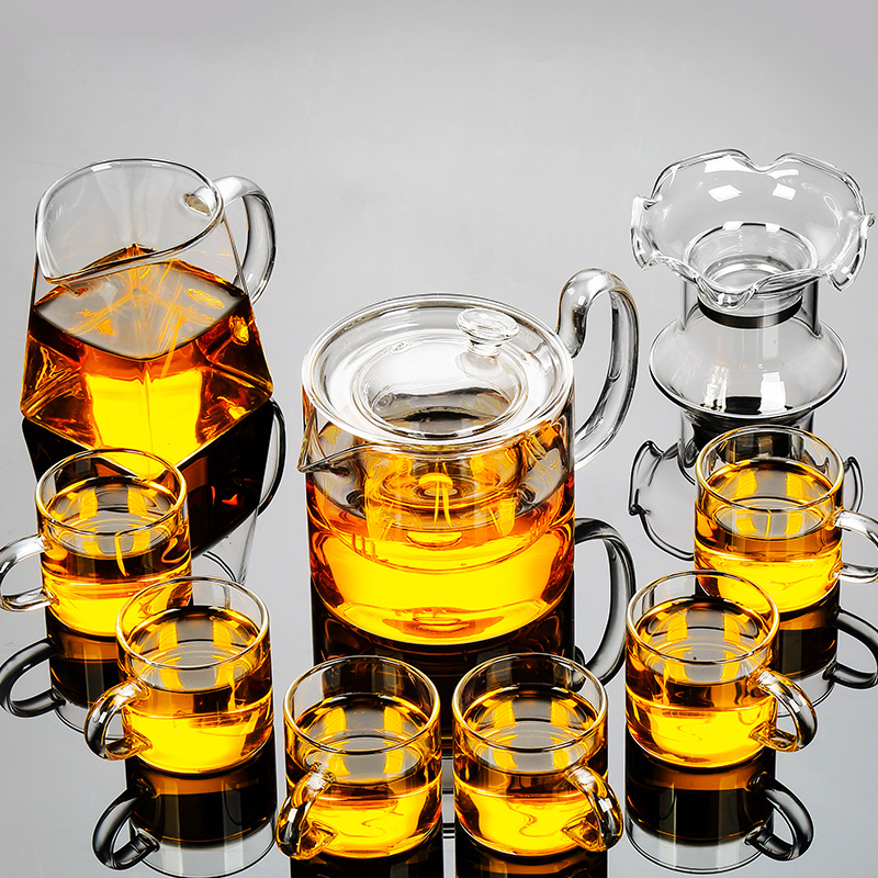 Light Spirit 7-piece set 98 Light Spirit 7-piece set heart wide road Cup lotus leaf 108 gold hand water spirit side pot gold hand Cup lotus leaf tea leak set glass Red 6 Cup 128 simple hammer side