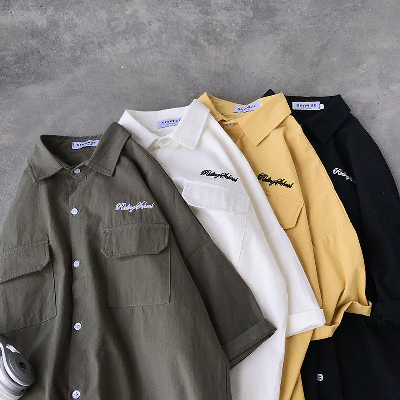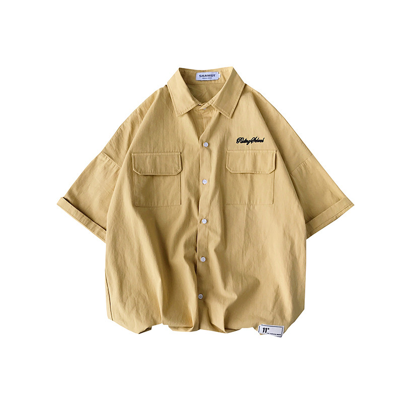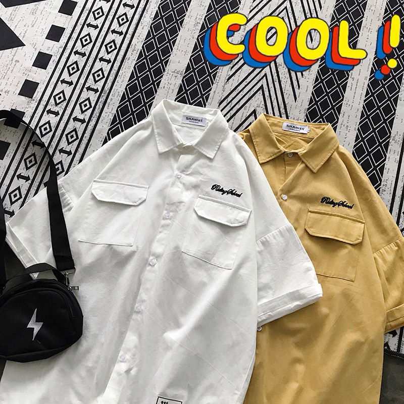 Very fairy shirt Men's work clothes Short-sleeved couple summer Korean version of the trend loose men Hong Kong style Ruffian handsome shirt handsome