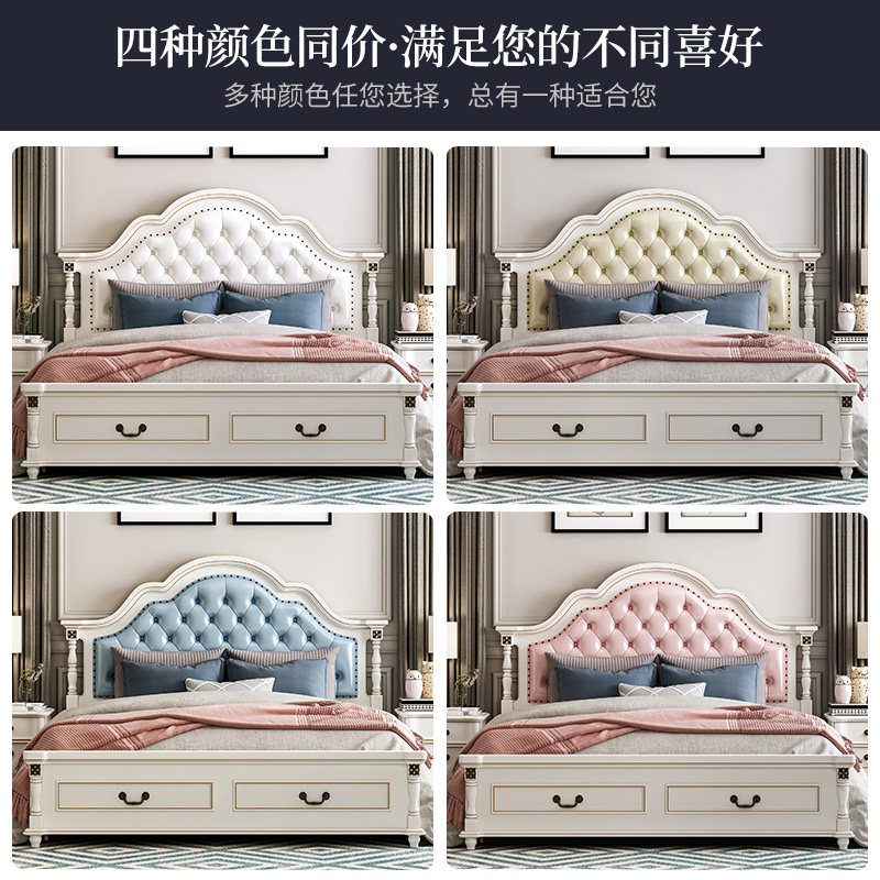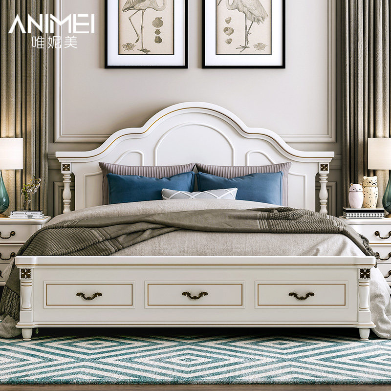 American bed double bed 1 8 m European bed solid wood bed storage princess bed master bed simple furniture 1 5 m bed