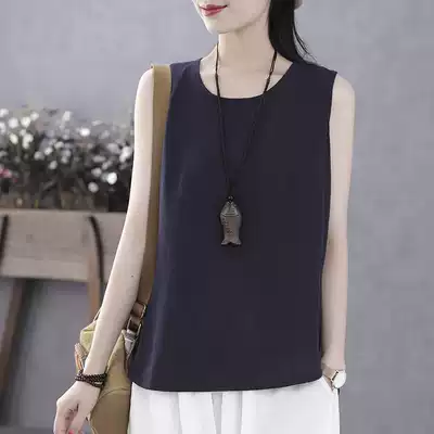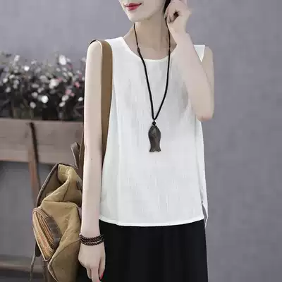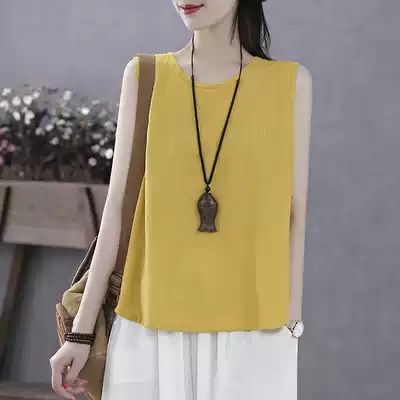 Han Soyi literary simple summer thin cotton vest female linen loose wear I-shaped short coat