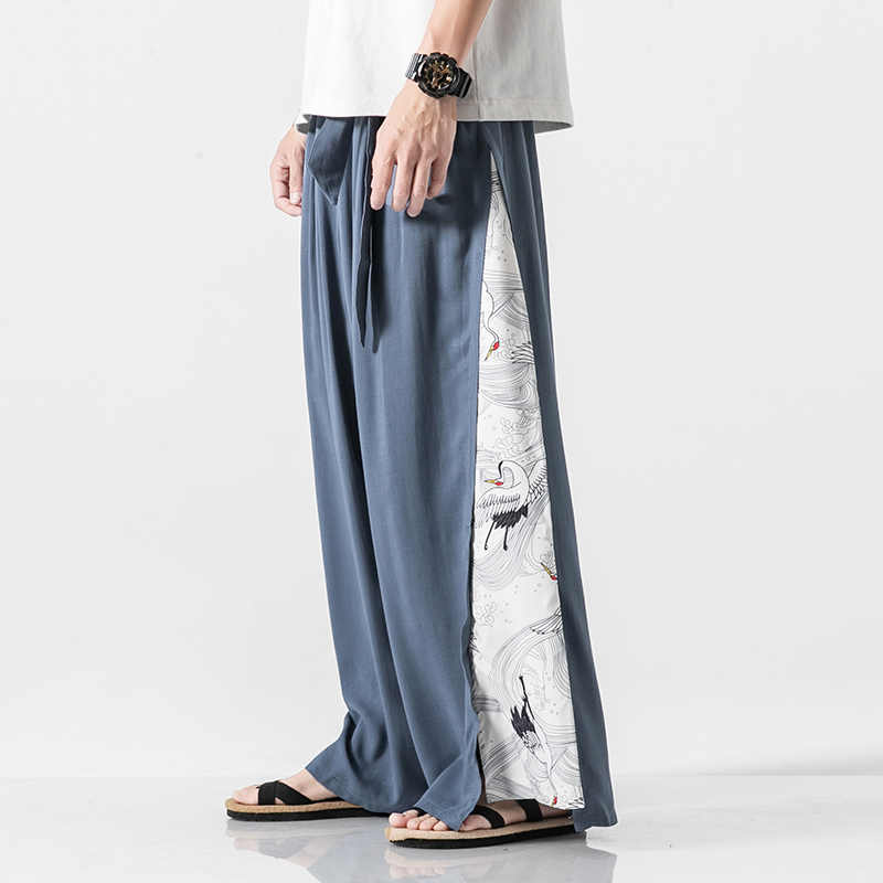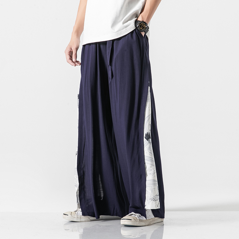 Hanfu wide leg pants Men's Chinese style men's clothing ancient style fairy loose elegant straight linen pants Tang casual pants