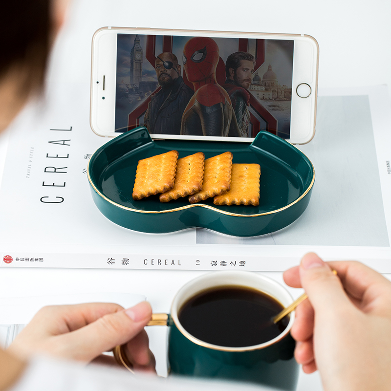 Malachite green 2 cup spoons can be placed on the phone long elliptical plate Malachite green 1 cup spoon can be placed on the phone peach plate Malachite green long elliptical plate (can be placed on the phone)Malachite green peach plate (can be placed on the phone)