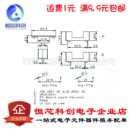 PTF-77B PTF-77B 76 5X20mm Green fuse holder fuse holders foot distance of 15mm 1 pieces = 10