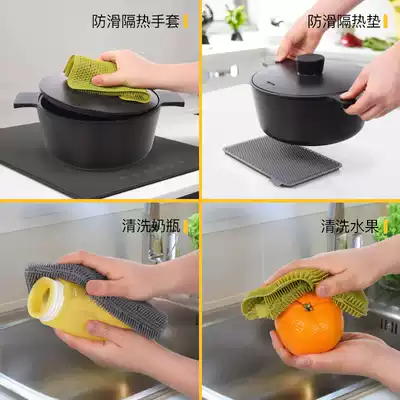 South Korea Siliman dishwashing brush cleaning cloth dishwashing artifact platinum silicone antibacterial cleansing cloth brush double-sided high temperature resistance