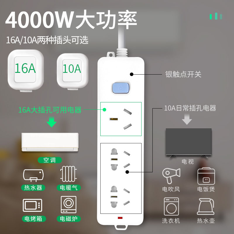 10a-turn 16a socket converter 16 An triple-hole air conditioning plug-in special macroporous extension wire High power conversion head