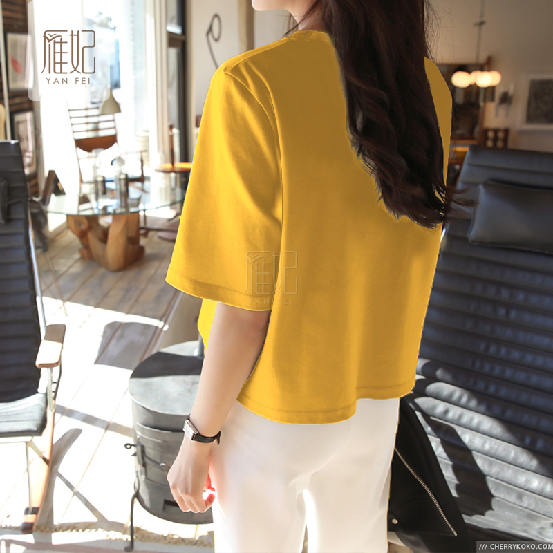 Pure cotton short-style blouses women's spring and autumn dew navel T-shirt short sleeve loose Korean version ins short summer women's clothing 2022 new