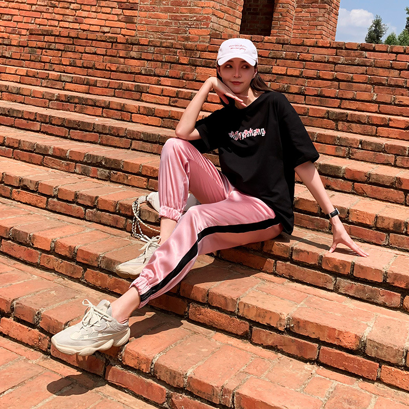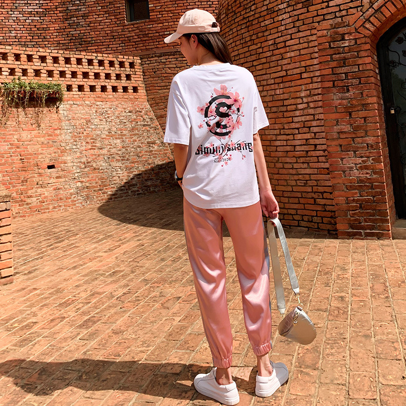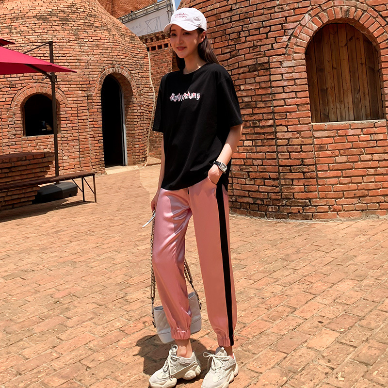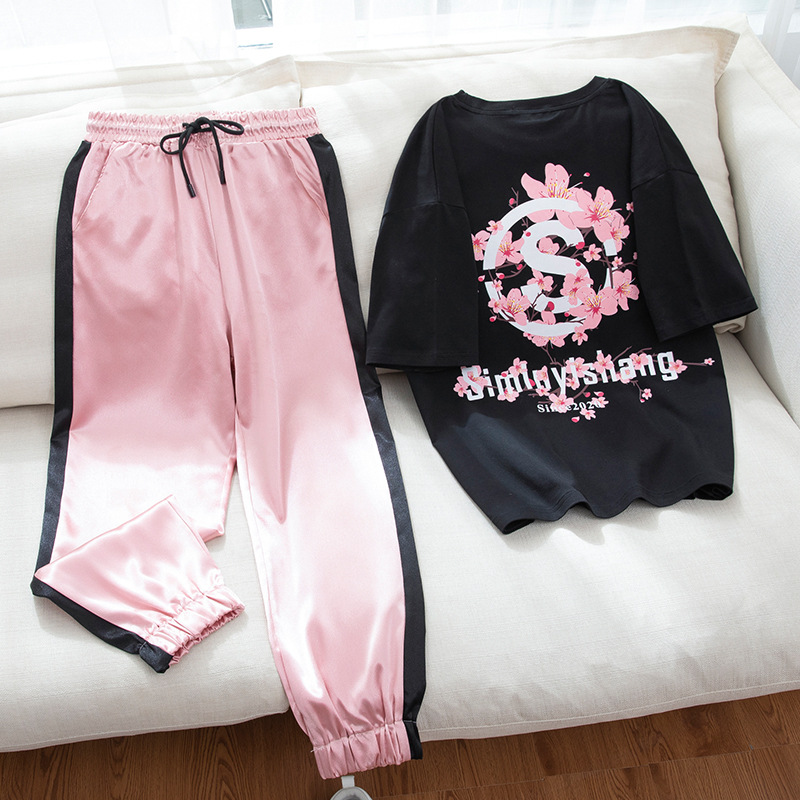 Sports and leisure suit women's fashion brand thin fashion 2021 summer small temperament ice silk two-piece set Foreign school