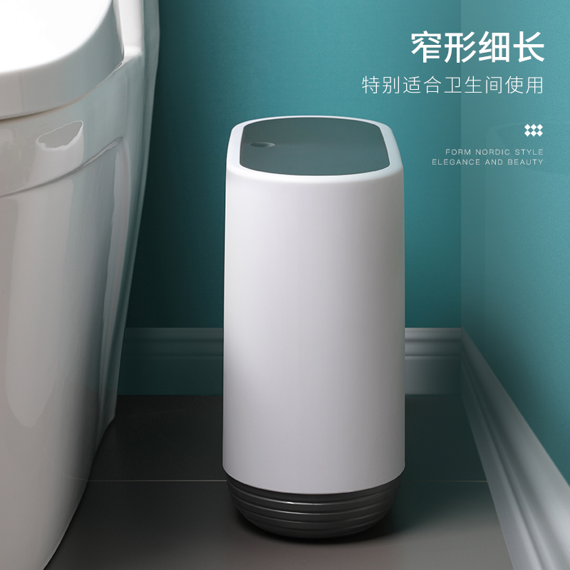 Simple powder room trash can household with lid Kitchen living room Creative Nordic large toilet trash can narrow paper basket