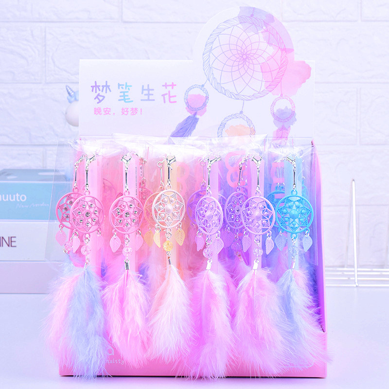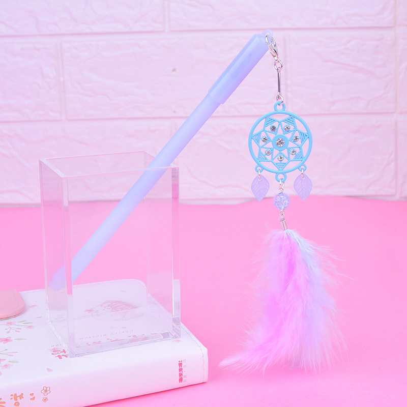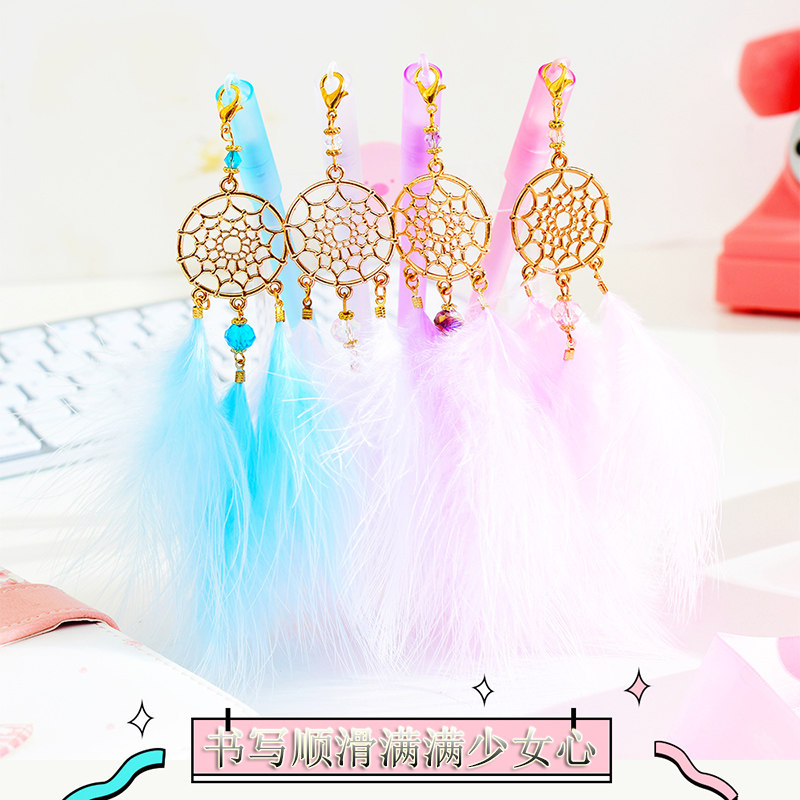 Simple gel pen Male and female girl heart cute small fresh stationery signature pen Students with cute creative dream catcher pendant Gel pen small fairy feather pendant Water-based pen shaking pen stationery