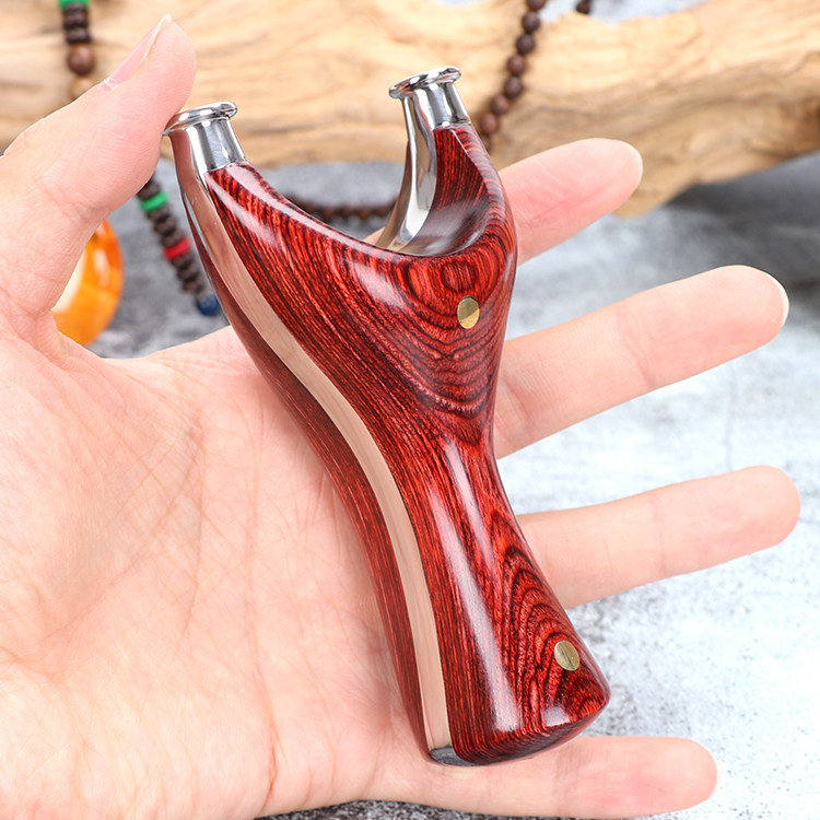 Metal Slingshot Flying Tiger Flat Leather Solid Wood Stainless Steel Slingshot Precision Outdoor Shooting No Binding Recurve Special Elastic Frame