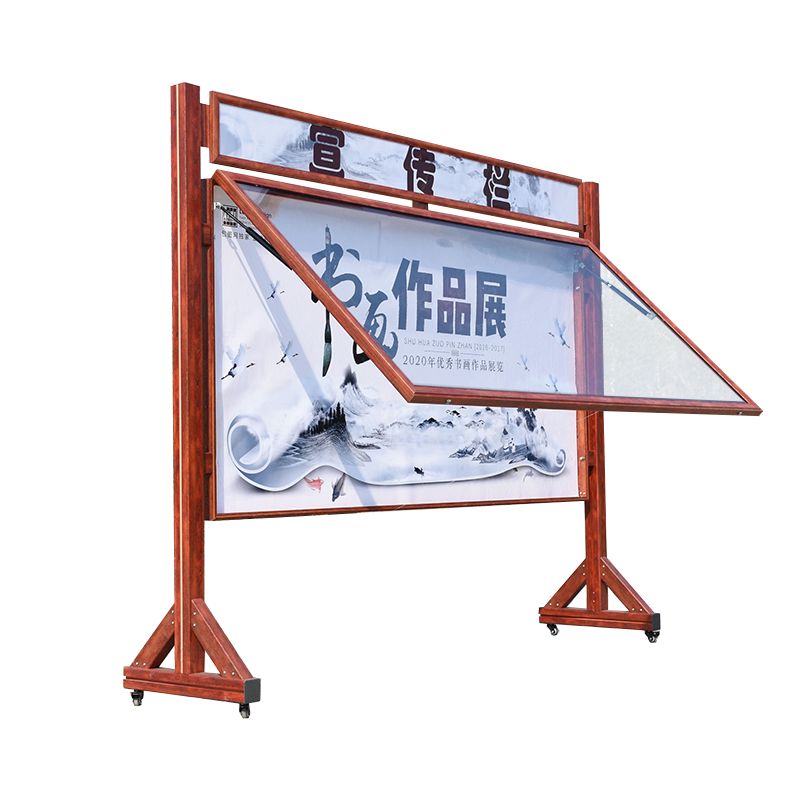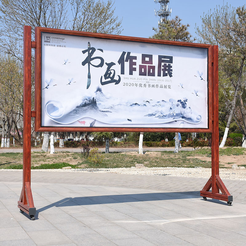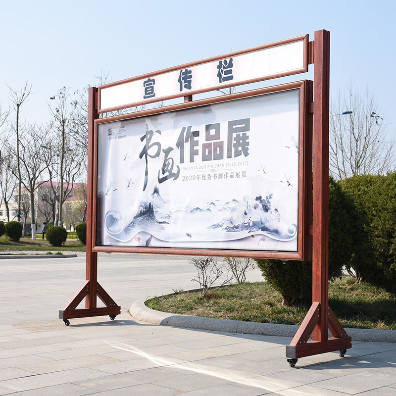 Customize Mobile Outdoor Publicity Bar Public Display Bar Signs Bulletin Boards Window Bar Wood Grain Color Promotional Rack Exhibition Racks