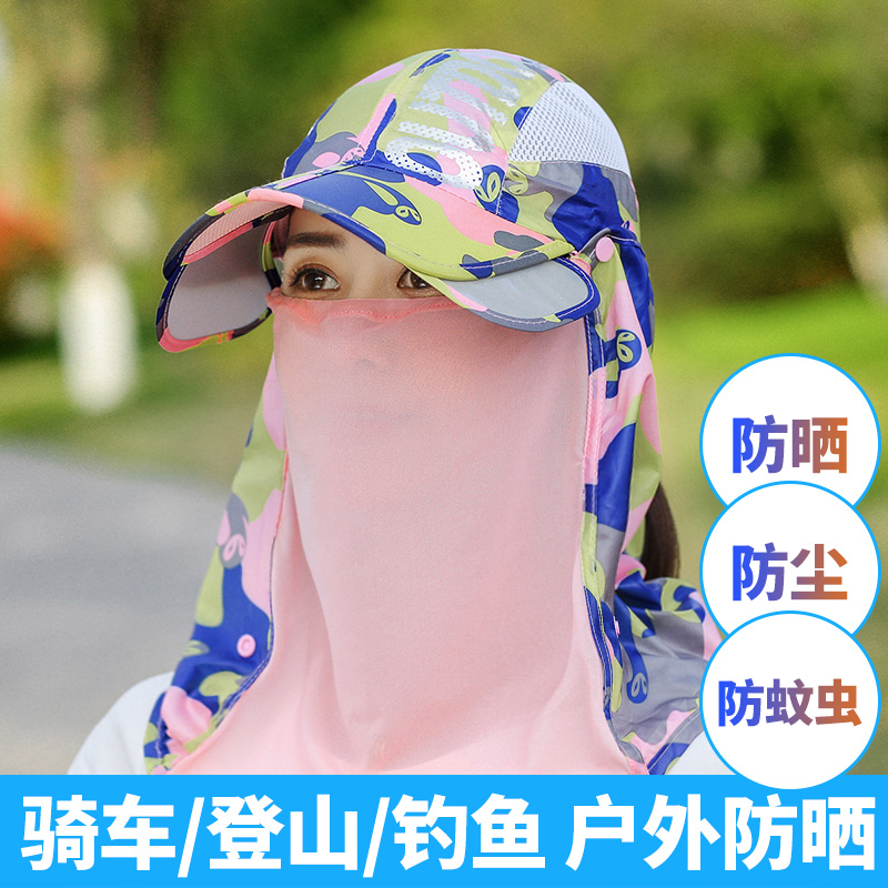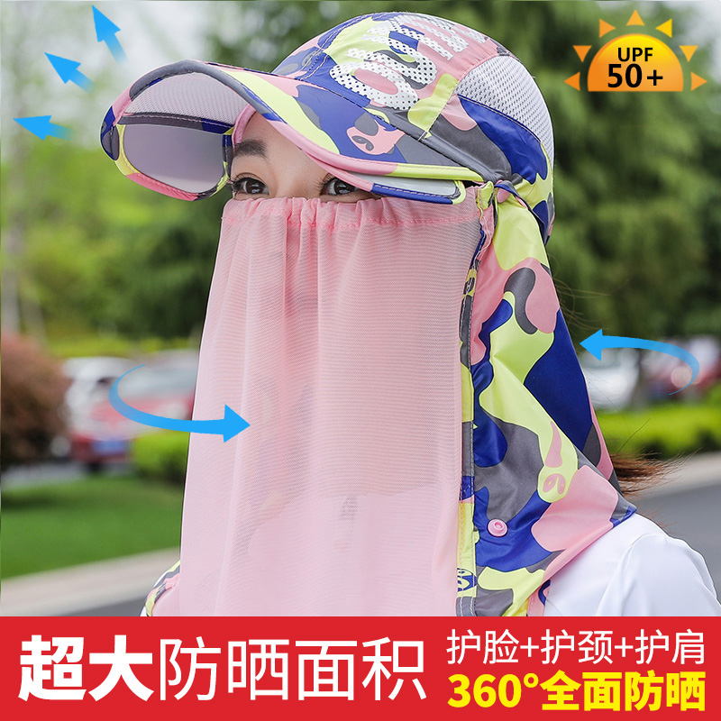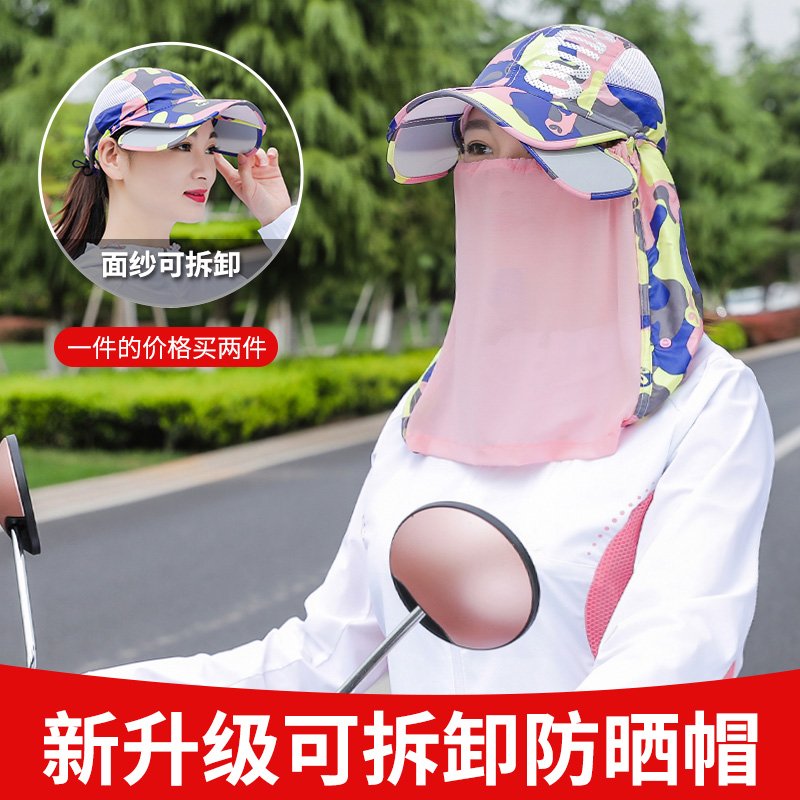 Sun protection face cover female summer cover anti UV outdoor folding sun hat bicycling veil to take tea sunshade hat
