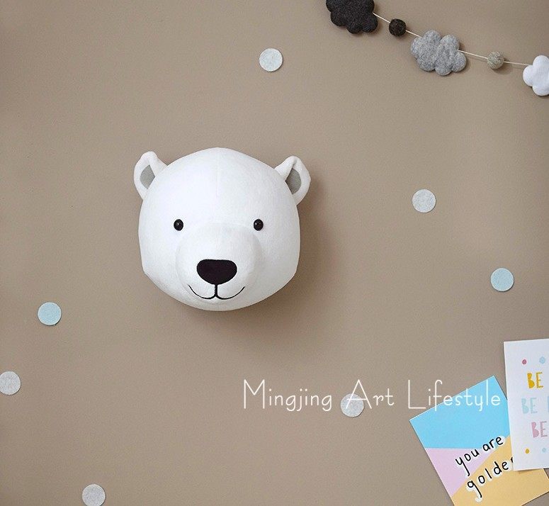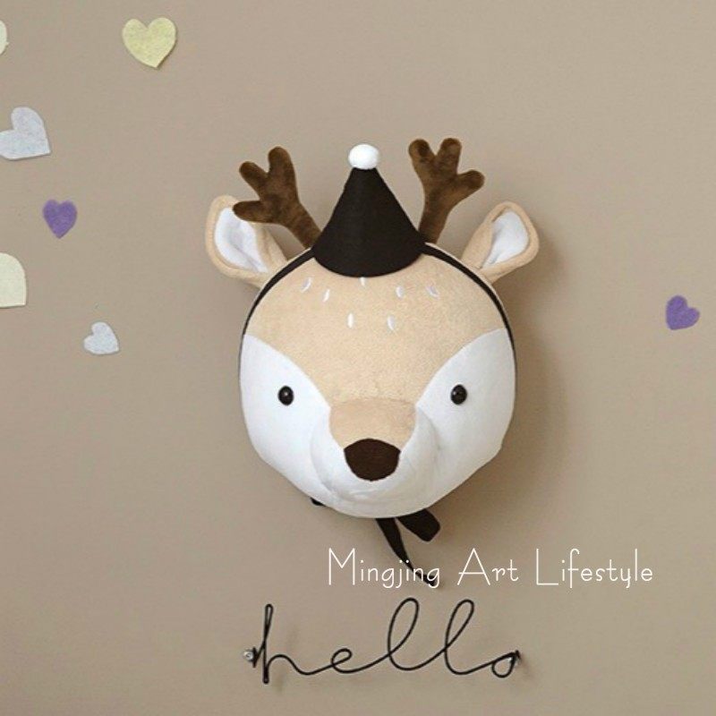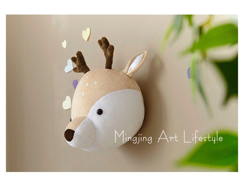 INS Nordic children's room animal head wall decoration plush three-dimensional animal head wall hanging three-dimensional animal modeling