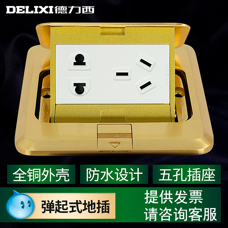 De Force West Ground Socket Concealed Full Copper Waterproof Ground Socket Home Five Holes Pop-up Floor Socket