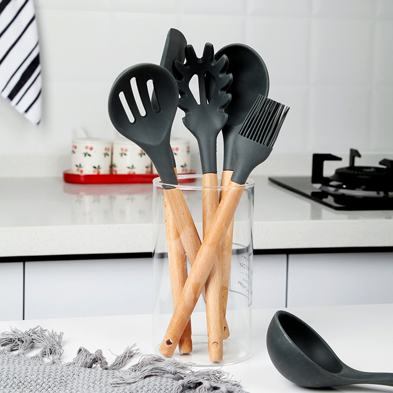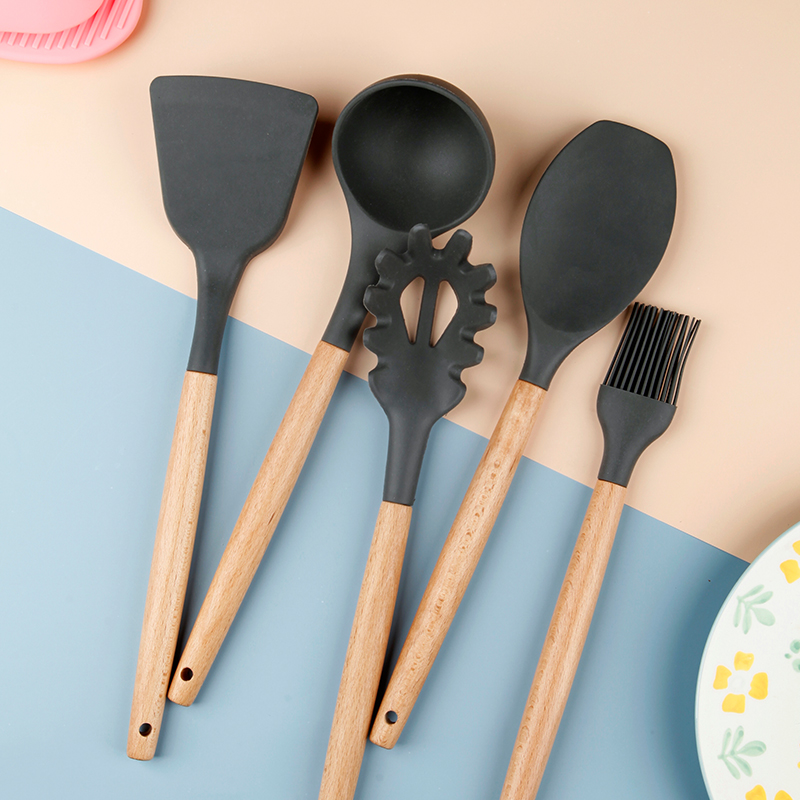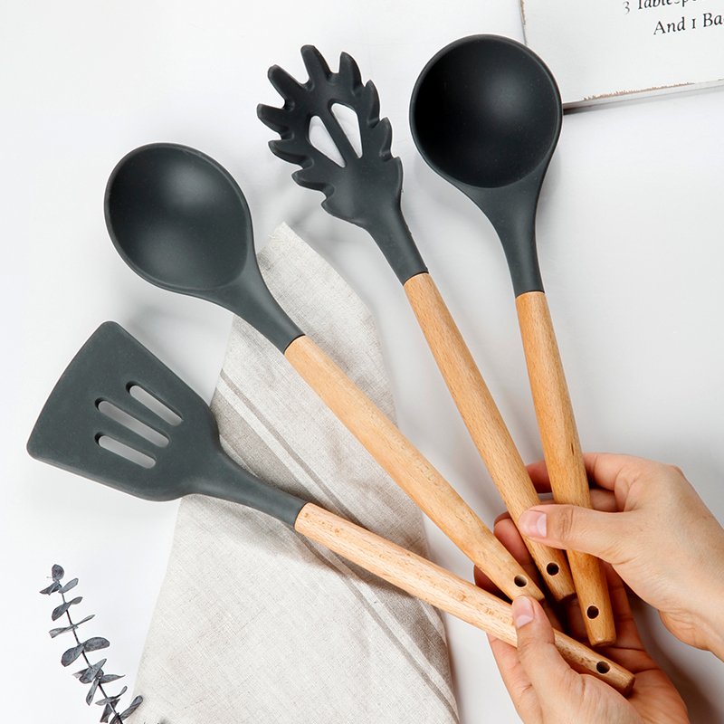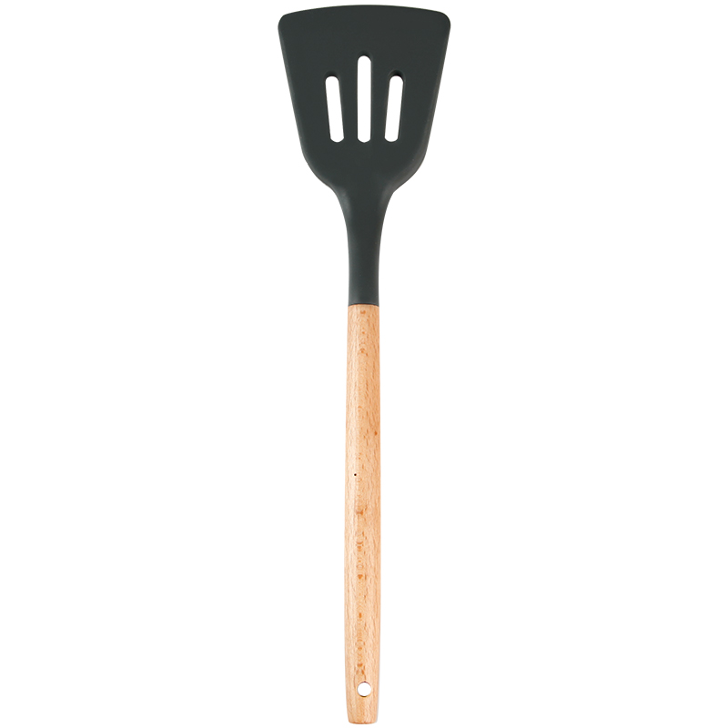 Hufu Dark Grey Beech Wood Not Stained With Pan Silicone Shovel Suit Creative Home Pan Spade Soup Spoon Drain Spoons Baking Scraper