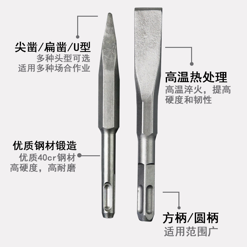 Electric hammer chisel impact drill bit electric pick head pointed flat chisel shovel square round handle pick brazing concrete electric hammer to open the wall
