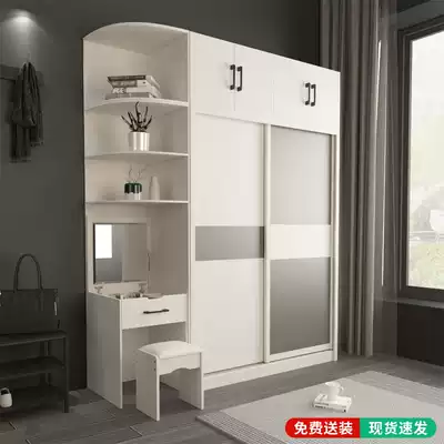 Nordic modern minimalist sliding door wardrobe economical plate-type wooden storage cabinet combination bedroom overall wardrobe