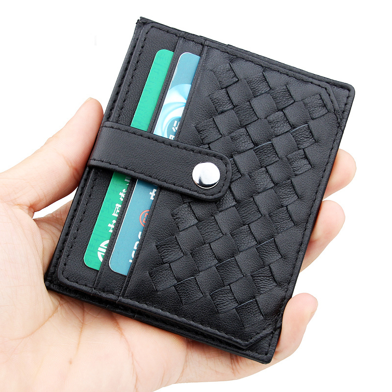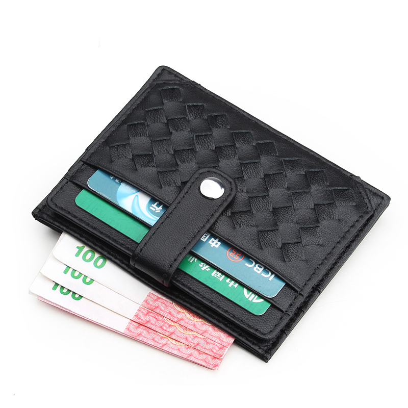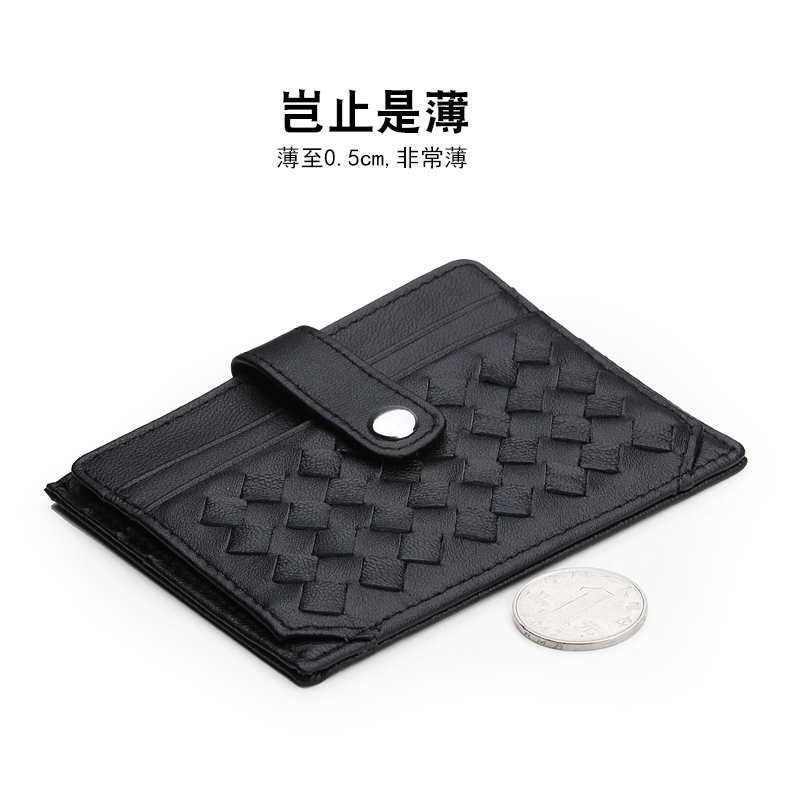 Ultra thin small card bag Women genuine leather small card clip Mini woven zero wallet minimalist card bag South Korea cute cutting sleeve