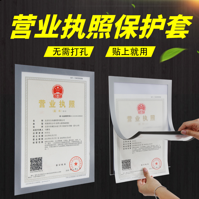 Industrial and commercial business license Photo frame A3 original punch-free A4 certificate Property notice envelope Elevator reminder protective sleeve
