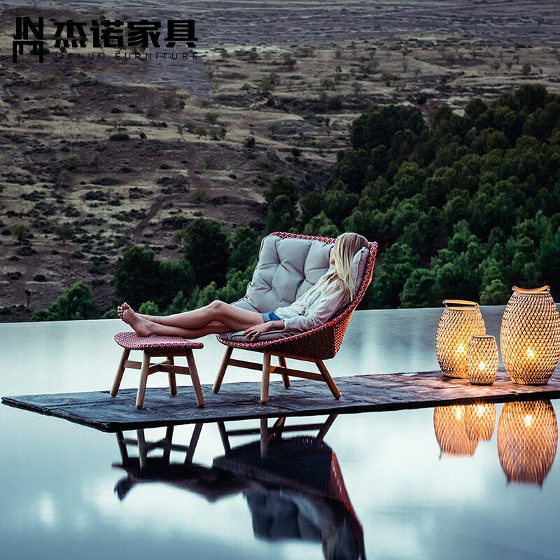 Designer Nordic lazy sofa chair terrace balcony leisure lounge chair imitation rattan with pedal bedroom single chair