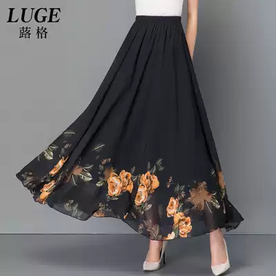 New mother skirt women Summer chiffon big swing skirt thin color a long dress middle-aged long dance skirt