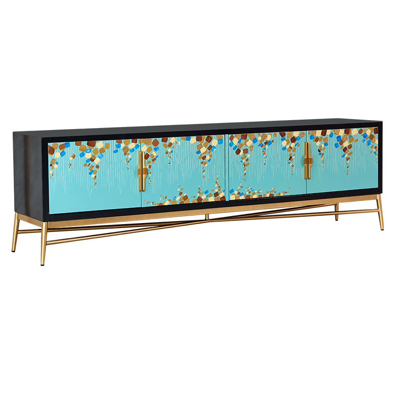 2022 post-modern living room French light luxury retro blue furniture luxury TV locker base cabinet background wall cabinet