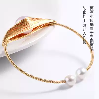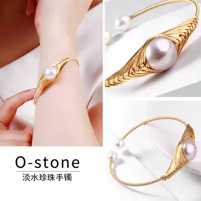 O-STONE Lifetime one stone natural freshwater pearl 14K gold injection opening bracelet personality simple Korean bracelet