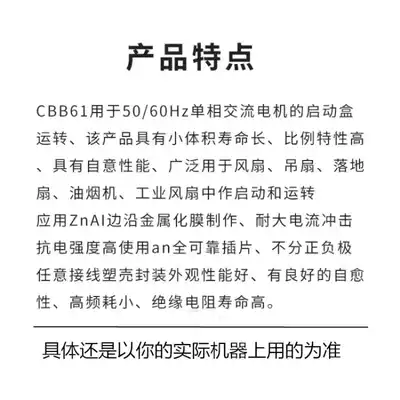 CBB61 fan ceiling fan lampblack machine capacitor 1 1 2 1 5 2 2 4 3 4 5 6 8 10UF450V line