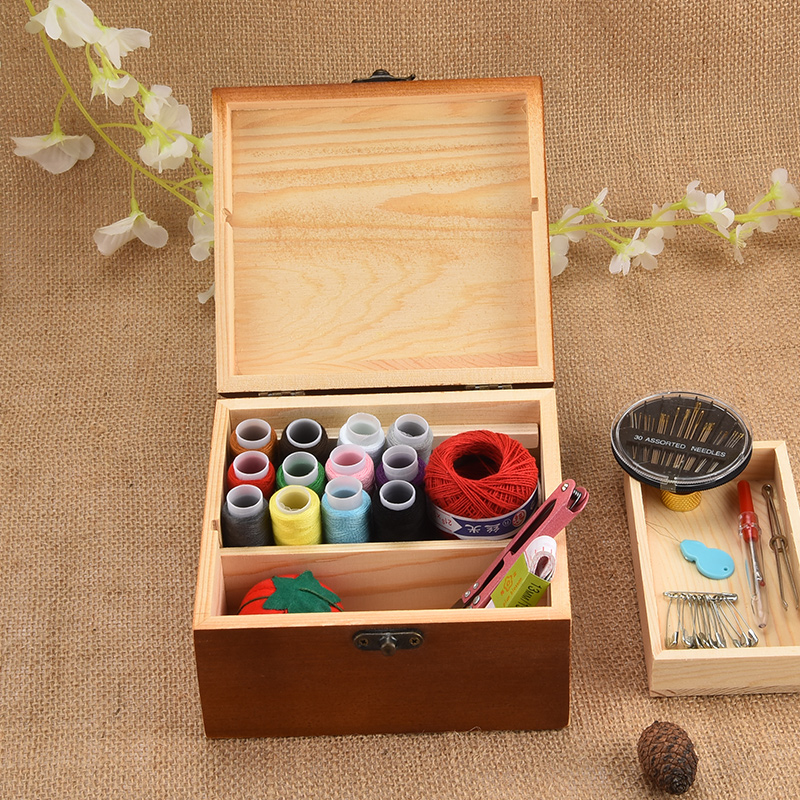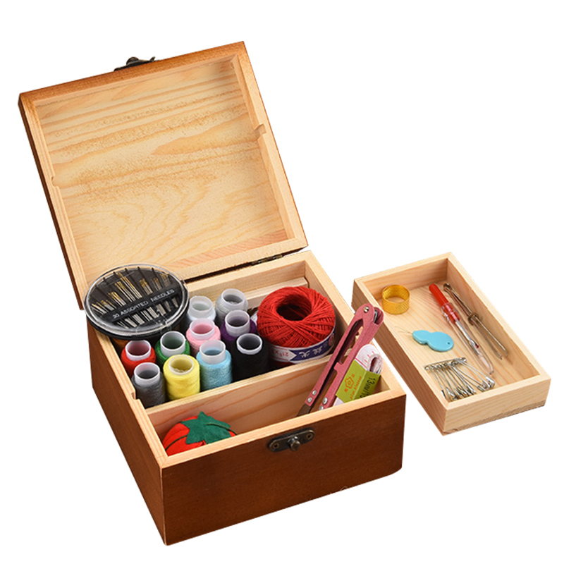 Needlework box set Needlework bag Household vintage sewing thread Needlework storage box Cross stitch tools Solid wood needlework box