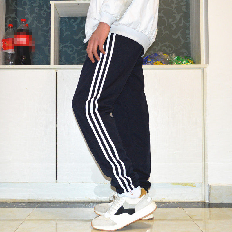 Spring Autumn Two Bars Casual Sports Pants Tight Mouth Small Foot Korean Version Loose INS Ultra-Fire Lovers' School Uniform Pants Tide