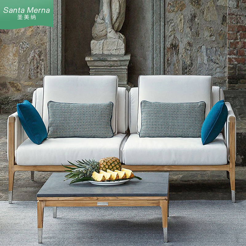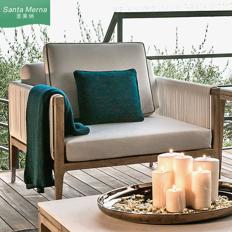 Teak outdoor sofa open-air rattan sofa Living room Single vines Sofa-Sofa Chair Solid Wood Tea Table Courtyard Casual Furniture