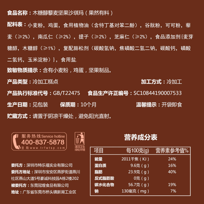 Wheat Flour Egg Edible Vegetable Oil Cocoa Powder Quinoa ≥ 2% Batam ≥ 2% Pumpkin Man ≥ 2% Raisin ≥ 2% Sesame Kernel ≥ 2% Watermelon Kern ≥ 2%