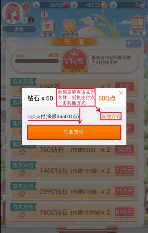 Android Tencent mobile game Love Nikki-Dress UP Queen 128 yuan 1460 diamonds 128Q coins 128qb automatic recharge