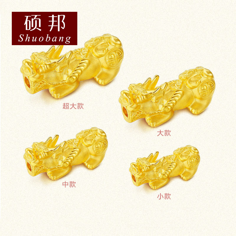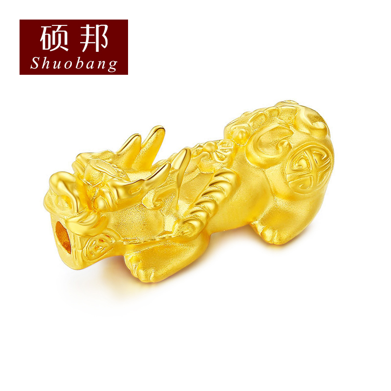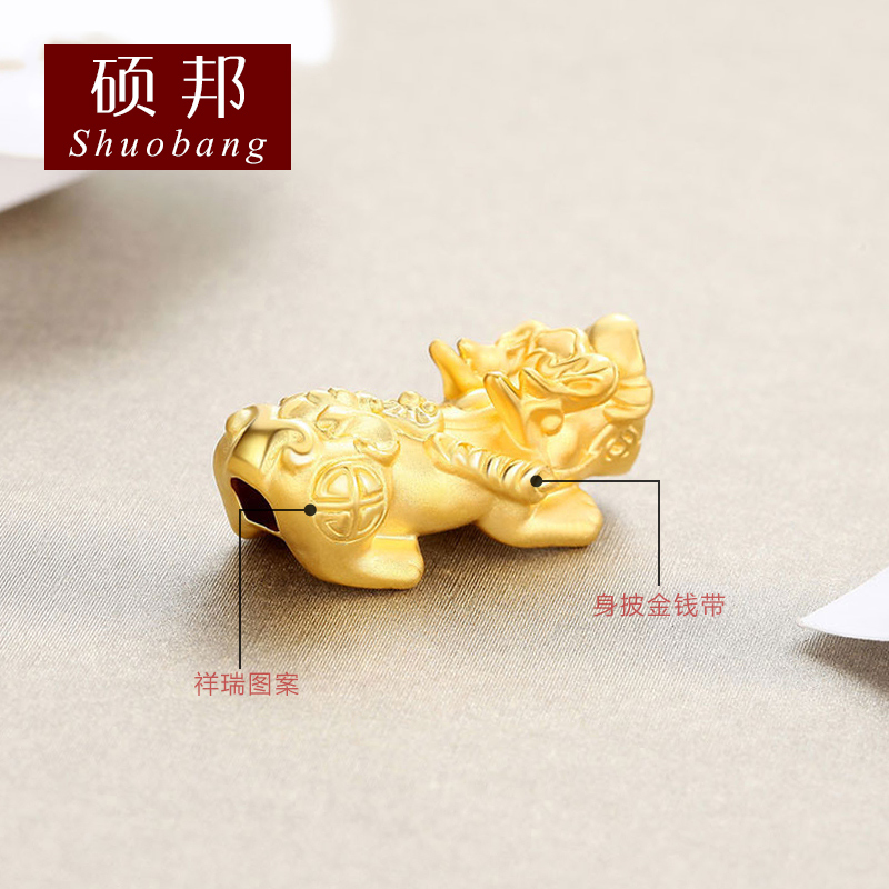 Mini Pixiu 3D hard gold gold transfer bead hand 999 pure gold hand baby natal year gold red rope female