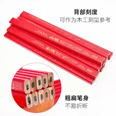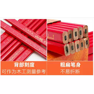Woodworking pencil thick core Big mountain city woodworking pen Flat thick scribing pencil Woodworking red core black pencil