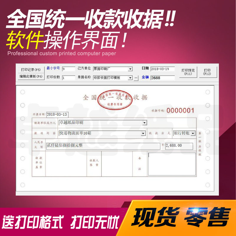 Needle printer order custom-made collection receipt printing universal continuous printing paper training institution financial special bill