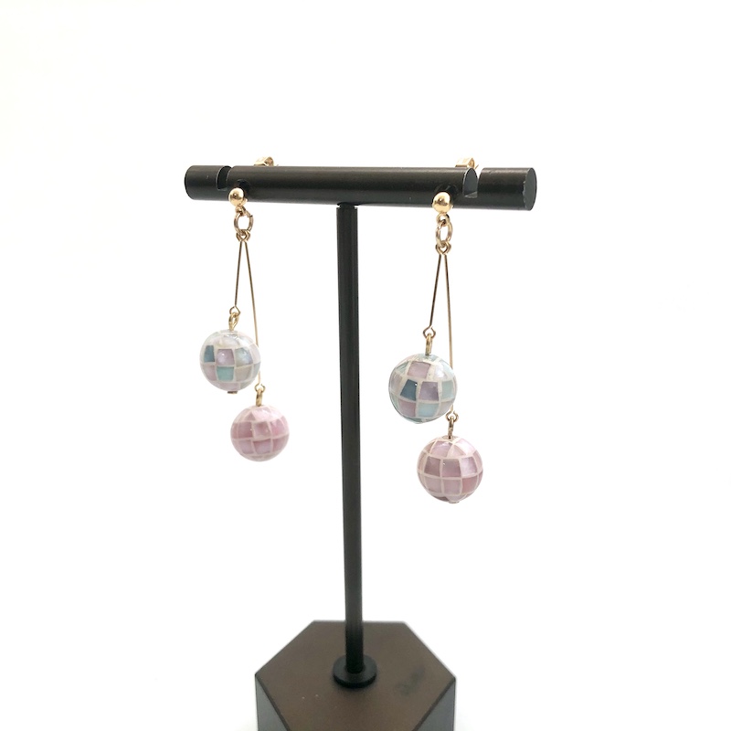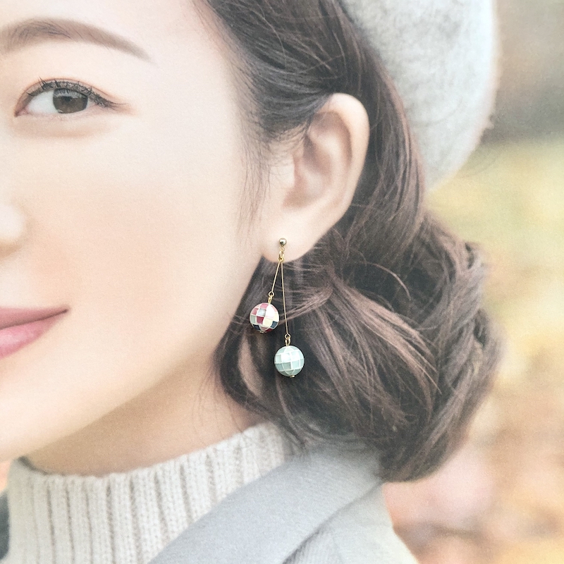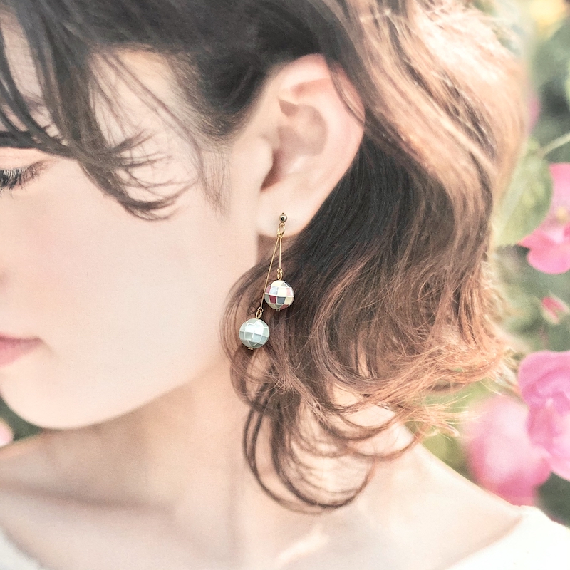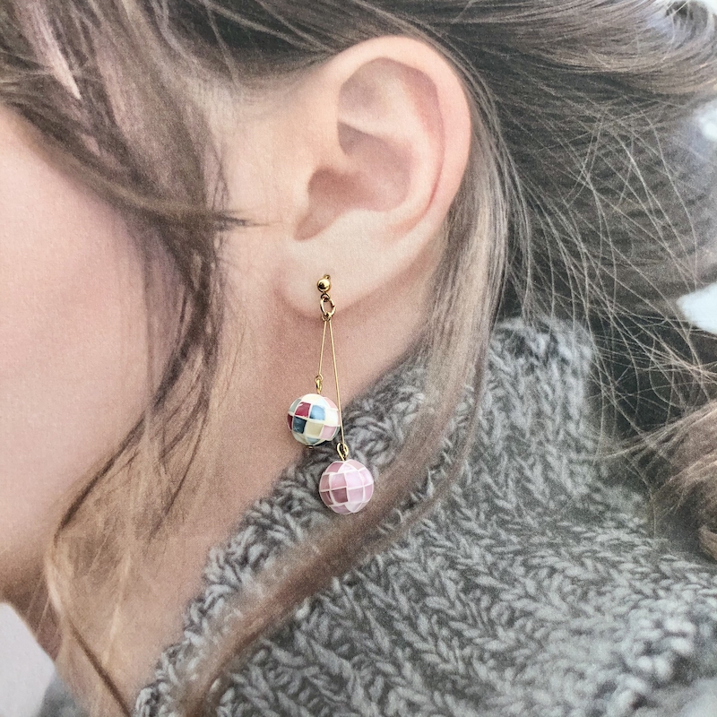 SHUNA "Sputnik" Japanese production of natural collage mosaic shells camouflage round ear accessories