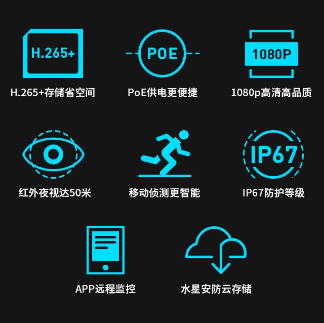 Waterstar MIPC212P H265 surveillance photographic lens Cable 2 million HD Internet Night Vision outdoor waterproof POE