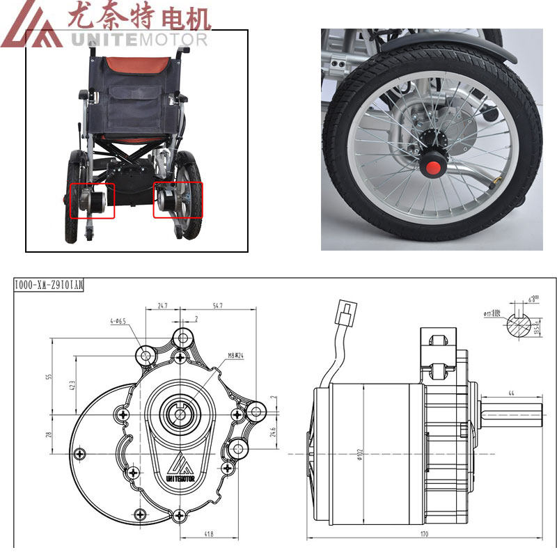 24V250W wheelchair special DC gear motor Unite original 75120 speed equipment modification, etc