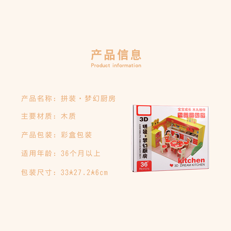 Children's wood 3D Cubism Jigsaw Diy Hut Puzzle Kitchen Assembly Model Building Block Toys 3-4-6 years old