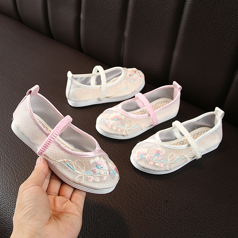 Girls net shoes children's embroidered shoes ethnic style old Beijing Hanfu cloth shoes Chinese style summer new baby sandals